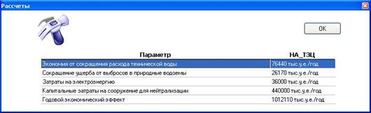 После того, как все необходимые данные внесены, можно нажимать на "Расчеты". Происходит автоматический подсчет результатов по бессточному режиму ТЭЦ.