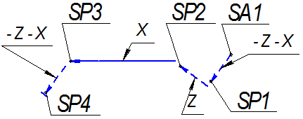 - срабатывает датчик перемещения SP1 и движение вдоль осей X и Z прекращается, включается вспомогательное прямое перемещение по оси Z;