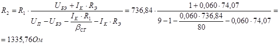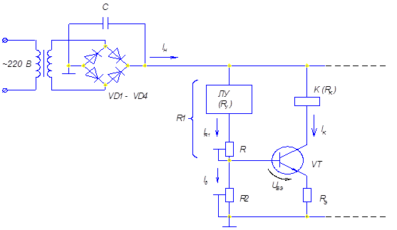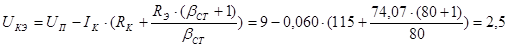 Определим параметры каскада транзисторного усилителя. Исходные данные: напряжение питания 9 В, ток коллектора равный току срабатывания реле 60мА, сопротивление цепи коллектора равное сопротивлению катушки реле 115 Ом, напряжение UБЭ