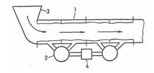 1 - мембранный излучатель колебаний; 2 - модулятор сжатого воздуха; 3 - загрузочное устройство; 4 - компрессор.