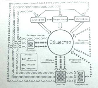 Можно привести обобщенную схему взаимосвязей общества и экосферы (рис. 2) [4, 10]: