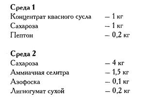 первая — смесь сусла с пептоном и сахарозой (наиболее легкодоступные источники питания), второй вариант представлял собой стереотипную питательную среду (углерод/азот/фосфор = 20/5/1) на основе сахарозы и минеральных удобрений; в состав среды был также включен в качестве активатора лигногумат. Состав сред на одну загрузку биобарабана (300 тонн ТКО):