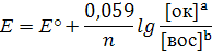 Потенциометрия основана на измерении разности электрических потенциалов, возникающих между разнородными электродами, опущенными в раствор с определяемым веществом. Электрический потенциал возникает на электродах при прохождении на них окислительно-восстановительной (электрохимической) реакции. Окислительно-восстановительные реакции протекают между окислителем и восстановителем с образованием окислительно-восстановительных пар, потенциал Е которых определяется по уравнению Нернста концентрациями компонентов пар [ок] и [вос]: