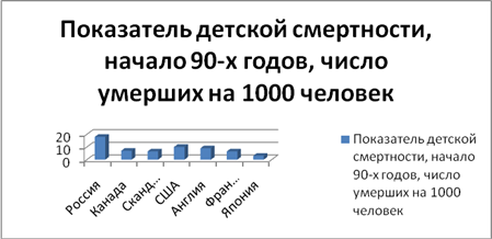Особенно тревожит рост заболеваемости и смертности детей. Лишь 8% детей в начальной школе считаются здоровыми, в средней школе данный показатель составляет уже 5%. По уровню детской смертности Россию можно сравнить со слаборазвитыми странами. Низкое качество окружающей среды и алкоголизм привели к резкому увеличению числа детей с различными генетическими отклонениями – 17%. Исследования в области биологии показывают, что генные отклонения у 30% популяции ведет к её гибели. Если деградация генофонда и дальше пойдет такими темпами, то без преувеличения можно сказать, что современная экологическая ситуация в России убивает будущие поколения.