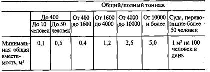 Конвенция по защите морской среды района Балтийского моря рекомендует на судах, построенных после 1 октября 1993 г., иметь следующие минимальные емкости для хранения мусора всех категорий.