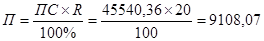 Размер отчислений налога на прибыль определяется умножением ставки налога (N) от балансовой прибыли по формуле: