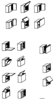 Рис. 12 метод збільшення кількості композиційних вирішень корпусних меблів шляхом перестановки самостійних блоків на прикладі базового варіанта, зображеного на рис.11