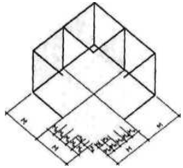 Де М'- модуль; п — кількість модулів, використаних у розмірі; h—товщина щитового елемента; Р— технологічний уступ (платик) або зазор, що дорівнює 2 мм.