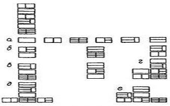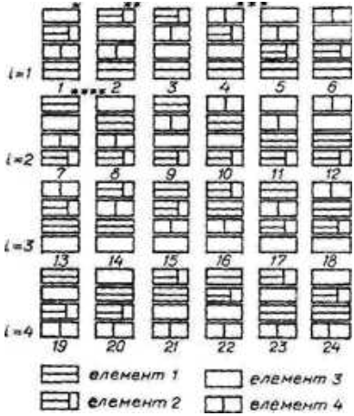 Приклади поділів такого тилу ілюструє рис.11. Кожне вирішення не враховує порядку блоків в утворенні можливого композиційного вирішення і характеризує лише конструктивно-компонувальний спосіб утворений багатоманітності. Для аналізу композиційно відмінних побудов використовують такі заходи.