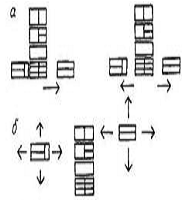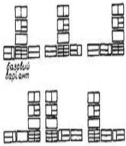 Синтез композиційних вирішень на базі блоків базового варіанта здійснюється на основі переміщень виділення тим чи іншим чином поділів виробу на блоки (рис.12). Якщо базовий варіант немає елементів, які повторюються, то кількість переміщень