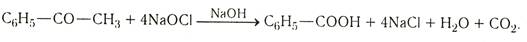 . Ароматические кетоны легко получаются реакцией Фриделя — Крафтса. Окисление обычно ведут с помощью гипохлоритов по схеме: