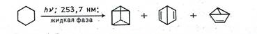 Интересная реакция с участием двойных связей наблюдается при облучении бензола в жидкой фазе светом с длиной волны 253,7 нм. В этих условиях молекула бензола перестраивается, превращаясь в так называемые валентные изомеры.