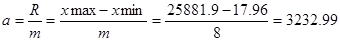 де R = xmax- xmin; m = 1 + 3,322 lgn(формула Стерджесса); n - загальне число одиниць сукупності.
