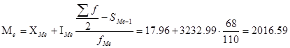 Медіана (Ме) - це величина, яка відповідає варіанту, що знаходиться в середині ранжируваного ряду.