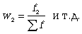 Частоти ряду f можуть замінюватися частостямиw, вираженими у відносних числах (долях або відсотках). Вони є відносинами частот кожного інтервалу до їх загальної суми, тобто: