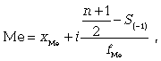 - нижня межа медіанного інтервалу; i - величина інтервалу; S-1