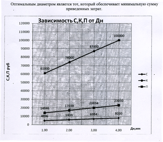 Оптимальным диаметром является тот, который обеспечит минимальную сумму приведенных затрат