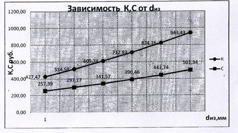 Выбор диаметра теплопровода в зависимости от тепловой нагрузки учитывает, что его диаметр влияет на затраты при перекачке теплоносителя, на потери тепла и стоимость строительства теплотрассы длинною 1000м. оптимальным является тот диаметр теплопровода, который обеспечит минимальную сумму приведенных затрат. (1)