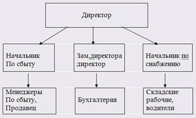 За все время работы торговое предприятие ООО "Инструмент 02" зарекомендовало себя как надежный партнер, стабильная в финансовом отношении фирма.Оперативный учет представляет собой концентрацию и анализ информации, отражающей выполнение хозяйственных различных операций предприятия. Данные оперативного учета используются для повседневного текущего руководства и управления предприятием. Оперативный учет и контроль над выручкой и прибылью осуществляется на основе первичных бухгалтерских документах. Бухгалтерский учет и все записи о хозяйственных операциях ведутся на компьютере в программе 1:С Бухгалтерия. По данным синтетического и аналитического учета прибыли и убытков составляется квартальная и годовая отчетность о финансовых результатах и их использование – форма №2 " Отчет о прибылях и убытках".организационная структура предприятия показана на рис.1.