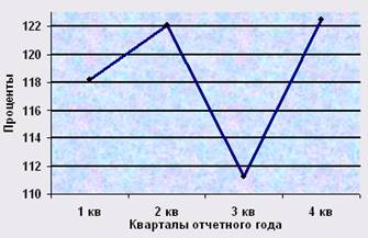 План товарооборота ООО "Инструмент 02" перевыполнен на 18,16% или на 1280 тыс.руб. По сравнению с прошлым годом его объем возрос на 1802 тыс.руб.,что составляет 27,61%. Рост оптового товарооборота в динамике произошел в основном за счет повышения продажных цен на товары. Индекс продажных цен по оптовому товарообороту в отчетном году к прошлому составил 1,26 раза. Пересчитаем фактический его объем за отчетный год в сопоставимые продажные цены: 8328: 1,26 = 6610 тыс.руб. Таким образом , повышение продажных цен на товары обеспечило прирост оптового товарооборота на 1718 тыс.руб. (8328-6610), что составляет 26,33% к фактическому его объему за прошлый год.Анализ выполнения плана и динамики оптового товарооборота проводят не только за год, но и по кварталам. Это помогает установить, как ритмично развивается оптовая реализация, как равномерно удовлетворяется спрос покупателей на товары. Для оценки равномерности и ритмичности развития товарооборота следует изучить выполнение плана и его динамику.Для определения равномерности и ритмичности развития товарооборота следует изучить выполнение плана и его динамику по кварталам, составив аналитическую таблицу.Изучим ритмичность и равномерность развития товарооборота ООО "Инструмент 02", составим табл. 2.