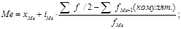Медианный интервал – первый интервал накопленная частота которого превышает половину от общей суммы частот.