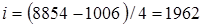 Определим длину интервала для денежных средств: d=(8854-1006)/5=1569.6(т.р.)