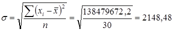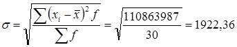 Среднее квадратическое отклонение так же рассчитаем по формуле простой (при расчете по исходным данным) и взвешенной.
