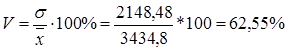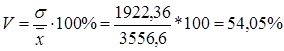 Вывод: в обоих расчетах коэффициент вариации значительно больше 33%. Следовательно, рассмотренная совокупность неоднородна и средняя для нее недостаточно типична.