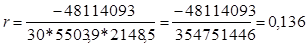 Рассчитаем линейный коэффициент корреляции по формуле: