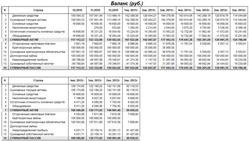 Также в работе приведены финансовые отчёты. Данные отчеты показывают состояние денежных средств, активов и пассивов предприятия в процессе реализации проекта.
