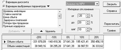 Анализ чувствительности по NPV: