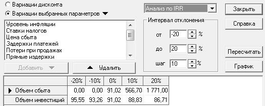 Анализ чувствительности по IRR: