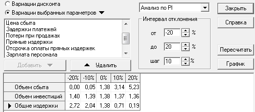Анализ чувствительности по PI: