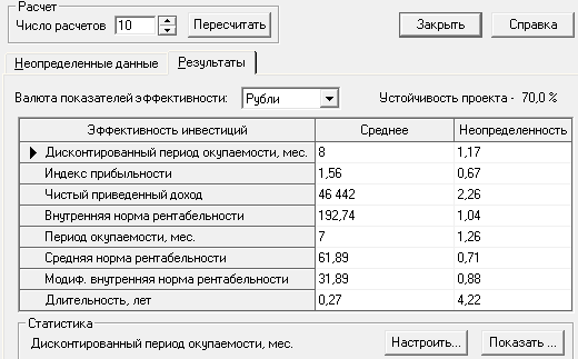 · Устойчивость проекта по анализу Монте-Карло 70%.