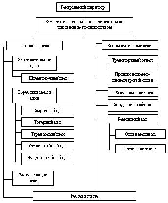 Производственная структура предприятия – это совокупность производственных единиц предприятия (цехов), входящих в его состав и формы связей между ними. Она зависит от вида выпускаемой продукции, типа производства и форм его специализации, от особенностей технологических процессов.