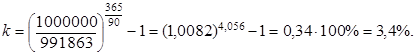 Рассчитаем годовую эффективную процентную ставку, эквивалентную учетной ставке 3,3 %: