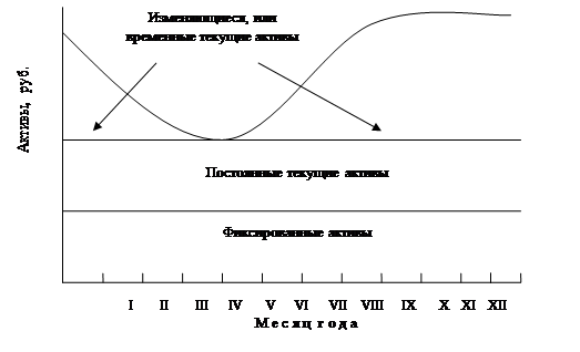 Статьи, входящие в текущие активы, поддерживают бизнес, перекрывая временной промежуток между понесением фирмой расходов и получением денежных средств от клиентов за проданную им продукцию. Таким образом, текущие активы обеспечивают производственную и коммерческую функции бизнеса. Обслуживание бизнеса требует соответствующего финансирования текущих активов за счет собственных средств, краткосрочных или долгосрочных обязательств. Это значит, что обслуживающую