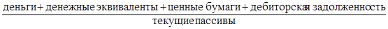 Коэффициент срочной ликвидности позволяет оценить возможность погашения краткосрочных обязательств за счет более ликвидных активов, так как в его числителе из текущих активов исключены запасы.