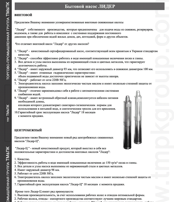 2. ВАТ "Промелектро" (Харьков), Украина, г. Харьков-5, ул. Искринская, дом 37 – виробник скважинних насосів серії «Водолій» - «Водомет».