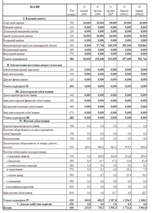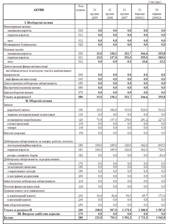 Балансові звіти ТОВ „Металоіндустрія Плюс” за 2005 2008 роки