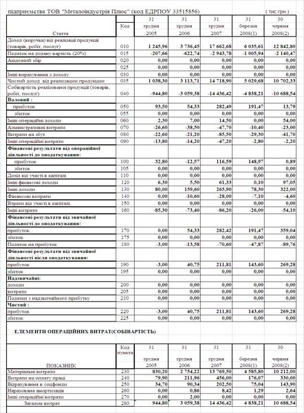 Звіти про фінансові результати ТОВ „Металоіндустрія Плюс” за 2005 2008 роки