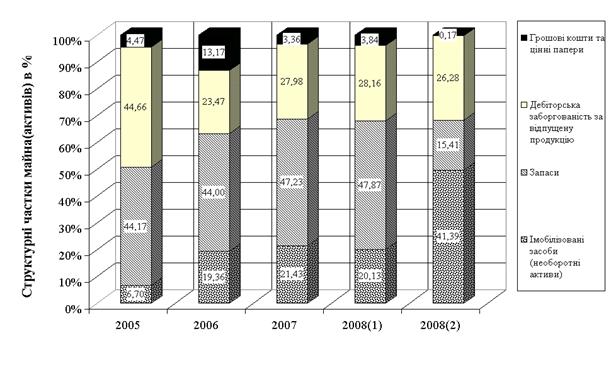 Рис.В.3. Динаміка структури характерних агрегатів активів балансу ТОВ „Металоіндустрія Плюс” у 2005 –2008 роках