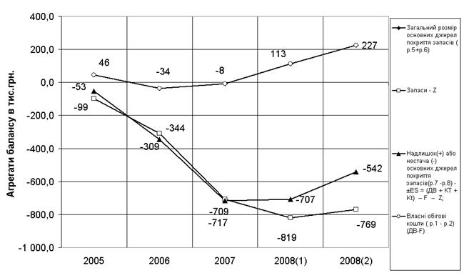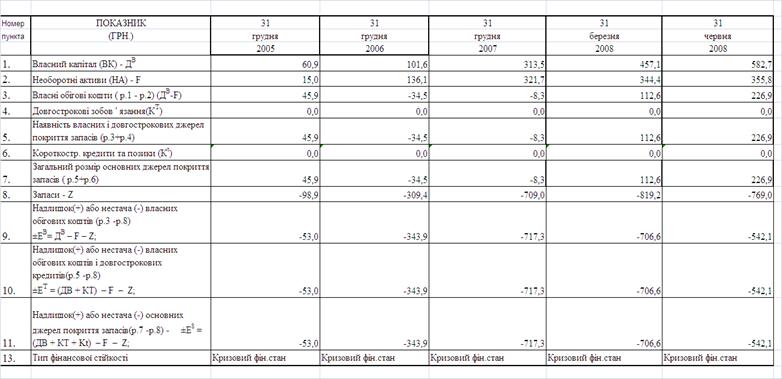 Аналіз динаміки показників фінансової стійкості по покриттю запасів підприємства ТОВ «Металоіндустрія Плюс» за 2005 2008 роки