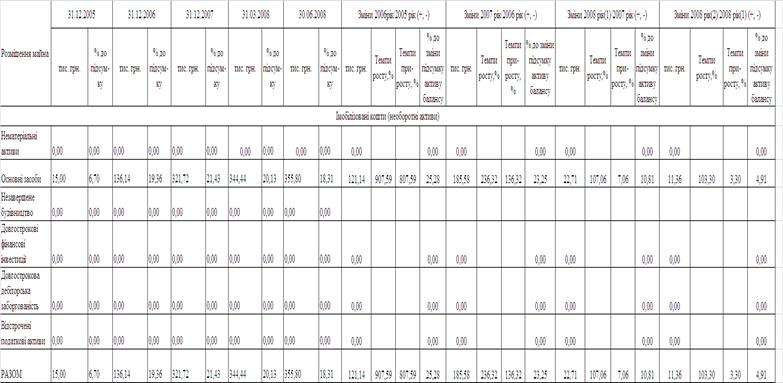 Аналіз динаміки складу та структури майна підприємства ТОВ «Металоіндустрія Плюс» за 2005 2008 роки
