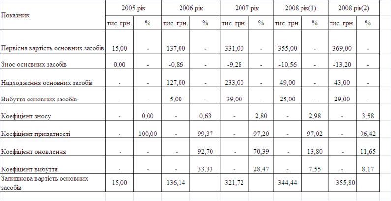 Характеристика основних засобів підприємства ТОВ «Металоіндустрія Плюс» за 2005 2008 роки