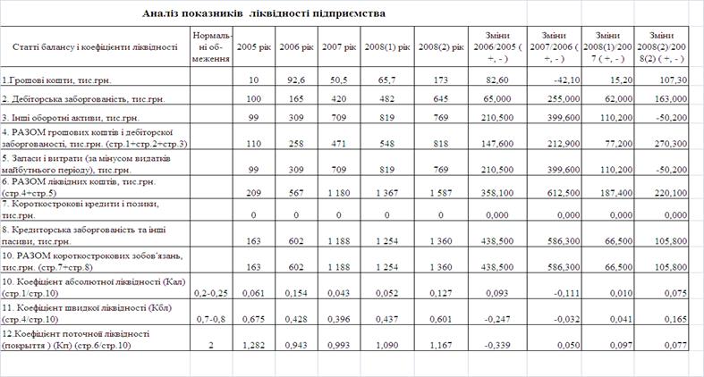 Аналіз динаміки показників ліквідності балансу підприємства ТОВ «Металоіндустрія Плюс» за 2005 2008 роки