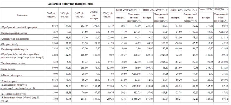 Аналіз динаміки прибутку підприємства ТОВ «Металоіндустрія Плюс» за 2005 2008 роки