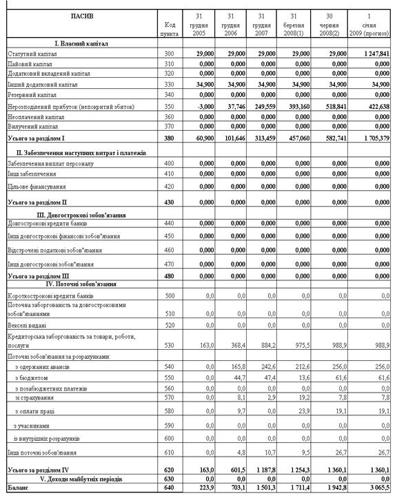 Результати прогнозування показників балансового звіту реорганізованого ВАТ „Металоіндустрія Плюс” у 2009 році