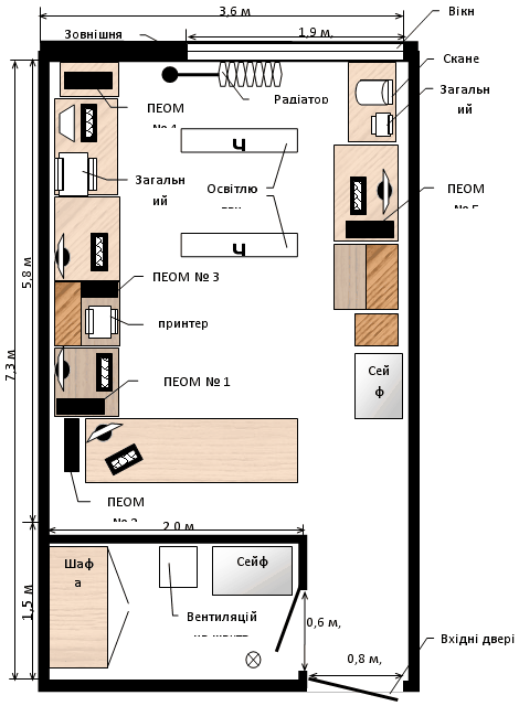 В четвертому розділі роботи „Охорона праці” проведений аналіз фактичного рівня умов забезпечення охорони праці в бухгалтерії підприємства та запропоновані заходи по росту рівня санітарнокліматичних та протипожежних умов діяльності.