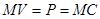 .Рівноважна ціна дорівнює граничним витратам і граничній цінності продукту: .